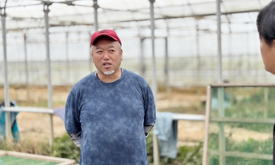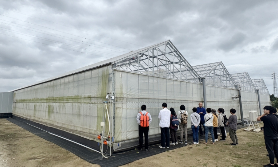 今回は、元和郷の社員としてカット工場や冷凍工場の立ち上げに携わった経験を持つ、新規就農者の小出恵三さんから貴重な講演をいただきました。小出さんは、その経験を最大限に活かし、和郷に勤めながら新規就農に至った独自の経緯を解説。就農のための具体的な準備や資金調達(融資の段取り)のプロセスを共有してくださいました。特に、高付加価値なフルーツトマトを選んだ戦略的な理由や、ご自身のこだわりが詰まったハイスペックなハウスを、将来の売上見通しまで含めて選定した投資根拠について語られたことは、研修生にとって大きな学びとなりました。質疑応答では、研修生から「売上、仕入れ、人件費から、最終的にどの程度の利益が見込めるのか」など、経営の核心に迫る質問が活発に飛び交い、参加者全員が農業をビジネスとして捉える重要性を再認識しました。講演後には、小出さんの実際の圃場に移動し、そのハイスペックなハウスを現地で見学しながら、さらなる詳細な説明を受ける実践的な研修も行いました。