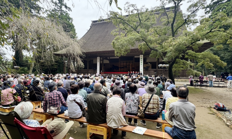 研修の最終日は、匝瑳市が主催する「ふれあいパーク八日市場 里山ハイキング」に参加し、里山の豊かな自然を満喫しました。時間の都合で5キロコースの散策となりましたが、深まる秋の里山を歩きながら、自然の息吹と地域で保全されている美しい景観を肌で感じることができました。ハイキング後には、「飯高檀林コンサート」へ。歴史ある地で奏でられる素敵な音楽に耳を傾け、心身ともに癒される贅沢なひとときとなりました。このイベント参加は、農業だけでなく、地域文化や自然に触れるという点で、研修の有終の美を飾るにふさわしい経験となりました。
