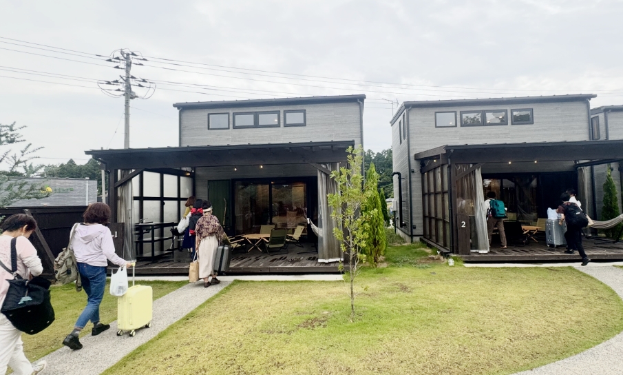 千葉県香取市にある農園リゾート「ザファーム」の視察では、農業体験とリゾートが融合した独自のビジネスモデルを学びました。「ザファーム」は、宿泊施設や温泉、レストランを併設し、自然の中でリラックスしながら農作業や収穫体験ができます。