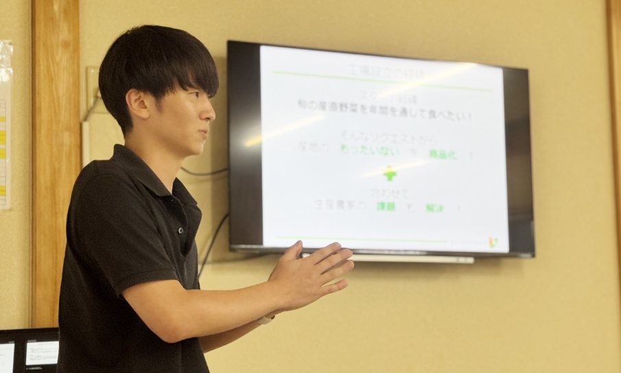 株式会社和郷が運営する冷凍工場およびドライ工場を訪問し、製造ラインを視察しました。担当の篠塚さんからは、調達された新鮮な青果が、いかにして高品質な加工製品へと生まれ変わるのかという一連のプロセスについて、詳細な解説をいただきました。特に、原材料の受け入れから最終的な商品パッケージングに至るまでの各工程における厳格な品質管理基準と、生産効率を高めるための運用ノウハウに焦点を当てて学びました。また、単に加工するだけでなく、規格外品などの青果を無駄なく有効活用するための独自の取り組みや、鮮度を保つための高度な保存技術にも触れました。この視察を通じて、食品ロスの削減と持続可能な農業生産システムへの同社の強いコミットメントを深く理解することができました。