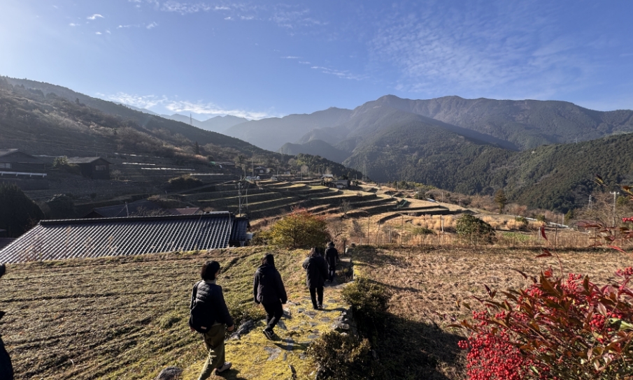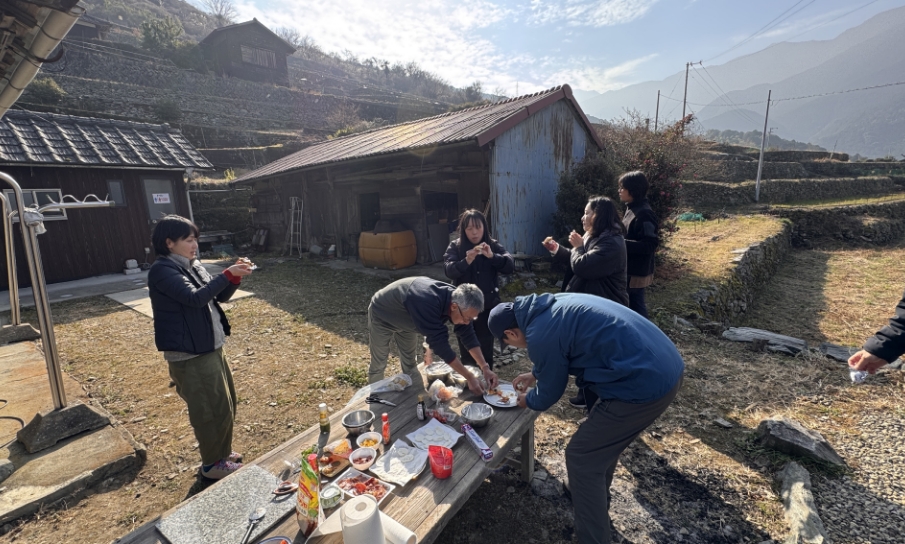最終日は、標高の高い山間部に位置する「千町(せんじょう)棚田」を訪れました 。美しい棚田の風景を守るために欠かせない「石垣修復作業」についての座学を受け、地域の文化と景観保全の結びつきを学習 。研修の締めくくりには、棚田の環境を活かしたピザ作りを全員で楽しみ、充実した4日間の活動を振り返りました 。西条の豊かな水、多様な農業、そして地域の温かなコミュニティに深く触れた研修生たちは、それぞれの決意を胸に、帰路につきました 。