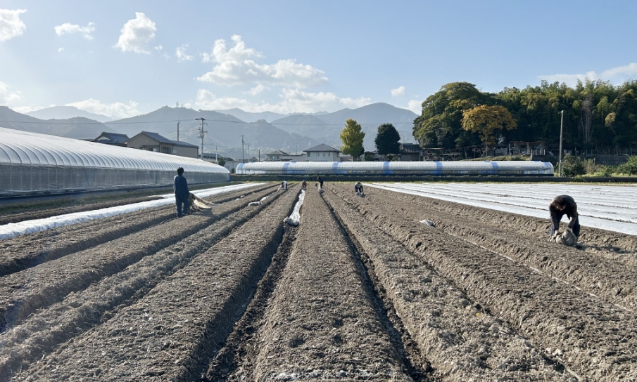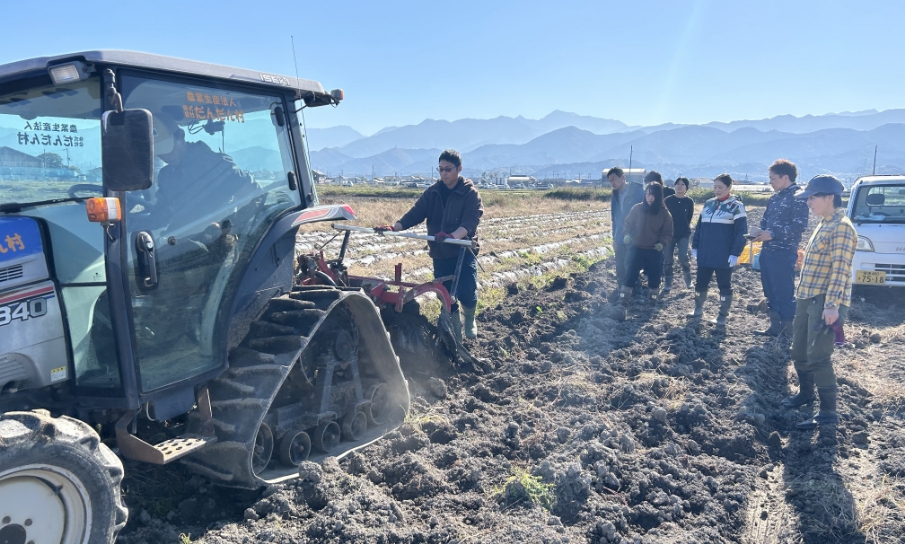 3日目は、丹下氏の「だんだん村」を訪問しました。西条市の主力産品である青ねぎと里芋をテーマに、栽培から出荷までの一連の流れを学びました。広大な圃場での青ねぎの定植や収穫、そして旬を迎えた里芋の収穫作業では、プロの農家が求める手際の良さと、効率的な作業動線を体感。収穫後の出荷調整作業では、消費者の手元に届く「商品」としての品質基準を厳しくチェックする姿勢を教わりました。農家さんとの対話を通じて、農業経営における「生産と出荷」の両輪の重要性を深く学ぶ1日となりました。