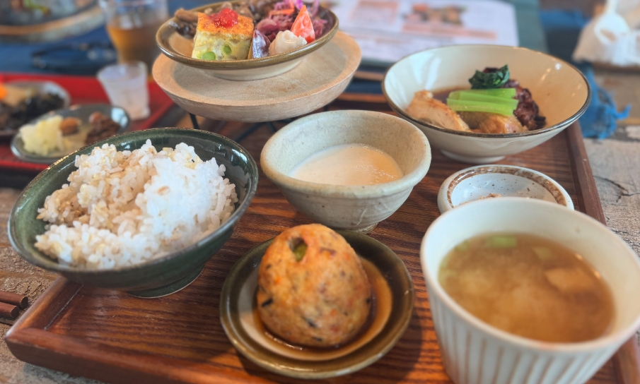 昼食には地元の素材を活かした「SOILIKKLE(ソイリクル)」のがんもどき御膳を堪能し、午後も引き続き圃場での作業に汗を流しました 。一つひとつの房を丁寧に扱う繊細な技術と、消費者に直接届ける販売の工夫に触れ、果樹農業の奥深さを体感する1日となりました 。
