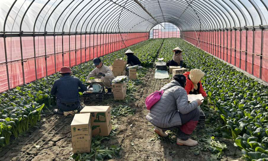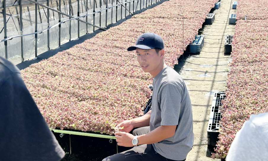 2日目は、岡光照園の岡氏のもとで、小松菜やほうれん草の栽培研修に挑みました。ハウス内での作業を中心に、小松菜の収穫から、選別、包装といった出荷までの一連の流れを実践。講師の岡氏からは、単なる作業手順だけでなく、消費者に選ばれる高品質な野菜を育てるためのこだわりや、経営上の工夫についても座学形式で深く学びました。自らの手で丁寧に収穫し、商品へと仕上げていく過程を通じて、プロの農家としての細やかな気配りを肌で感じる1日となりました。