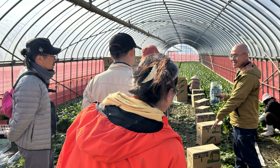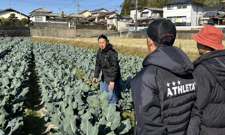 2日目は、井口彰大さんが営む「井口農園」を訪れました。午前・午後を通してじっくりと農作業研修を行い、作物の成長を支えるきめ細やかな管理技術を教わりました。昼食には、地元の名物「本家 山賊鍋」を囲み、地域の人々に親しまれる食のボリュームと温かさを実感。午後も引き続き土に触れ、井口さんとの対話を通じて、一人の生産者として作物とどう向き合い、どのようなこだわりを持って市場へ届けているのか。その情熱をダイレクトに受け取る、密度の濃い1日となりました。