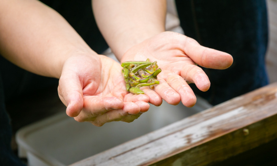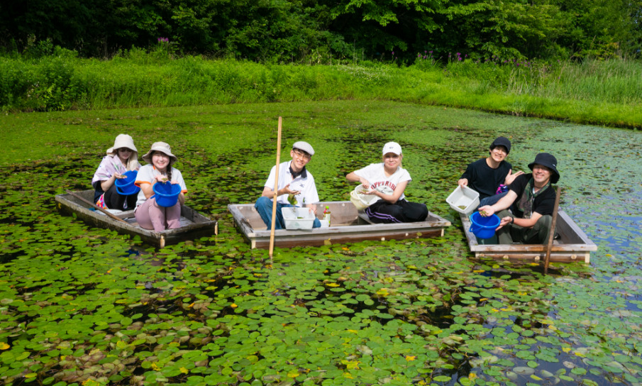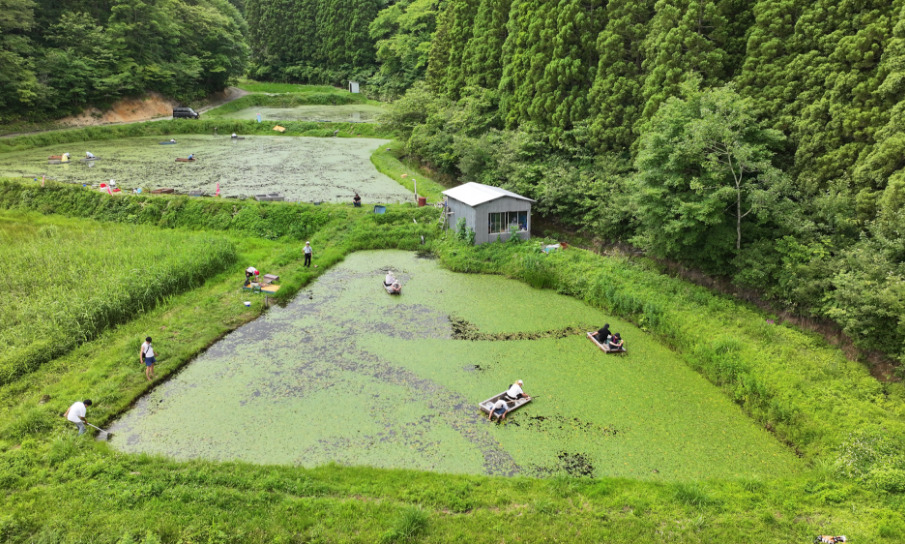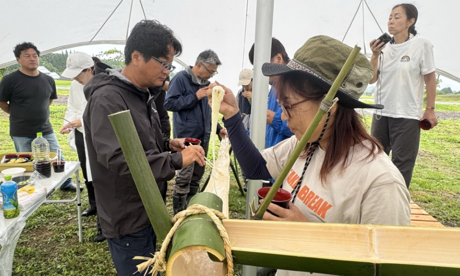 大潟村では里芋の定植、三種町ではじゅんさいの摘み取り研修、そば打ち体験も行われました。