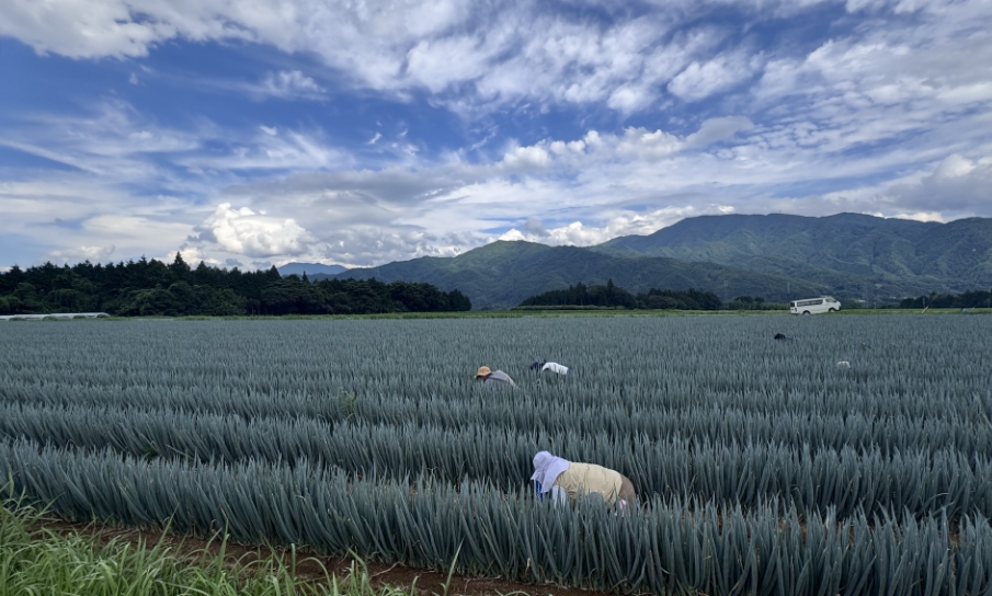ネギやアスパラの圃場での除草作業、流しそうめん体験、リンリン祭りの見学などを行いました。