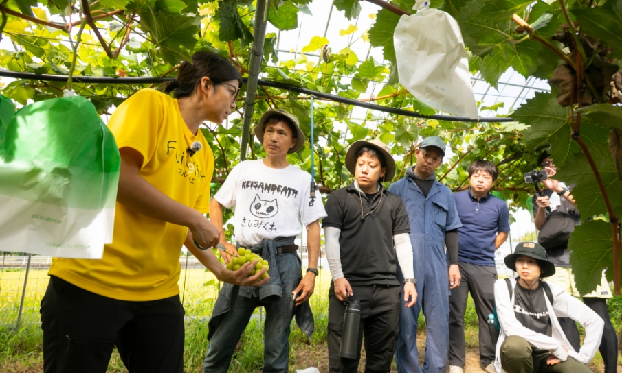 9月18(木)から21日(日)、愛媛県西条市にて、西条市内の水めぐりツアー、 ぶどう・イチジク・ハウス栽培などの農作業研修・座学研修、成龍酒造やSAIJO BASEの視察などが行われました。