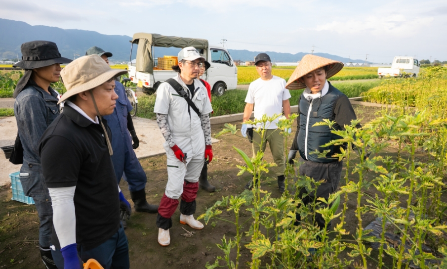9月11日(木)から14日(日)まで、福岡県久留米市にて実地研修が行われました。ぶどう、オクラなどの夏野菜の収穫や、選果場での作業・出荷のお手伝いなどの農作業研修、手打ちうどん体験が行われました。