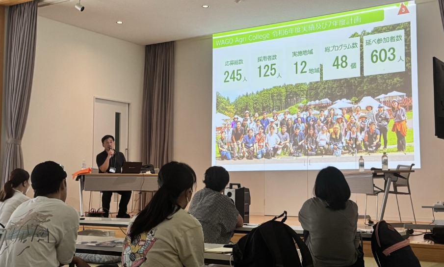 株式会社和郷 代表取締役 木内博一氏、和郷園 理事 佐藤正史 氏、株式会社和郷 ナレッジバング事業統括取締役 髙橋義直氏による講演、農園リゾートTHE FARM、株式会社和郷(カット工場、冷凍工場視察)の視察、最終日にはワークショップも行われました。